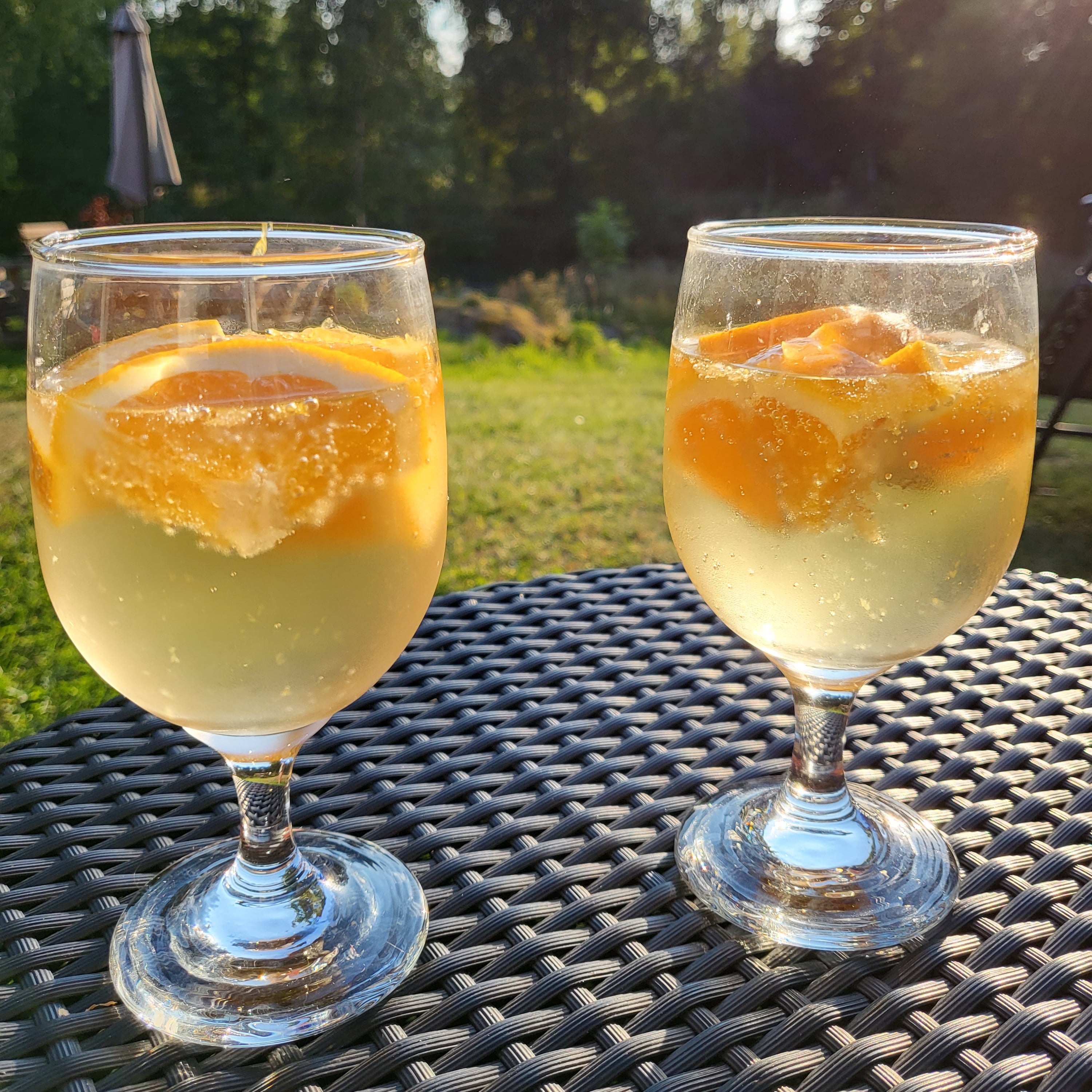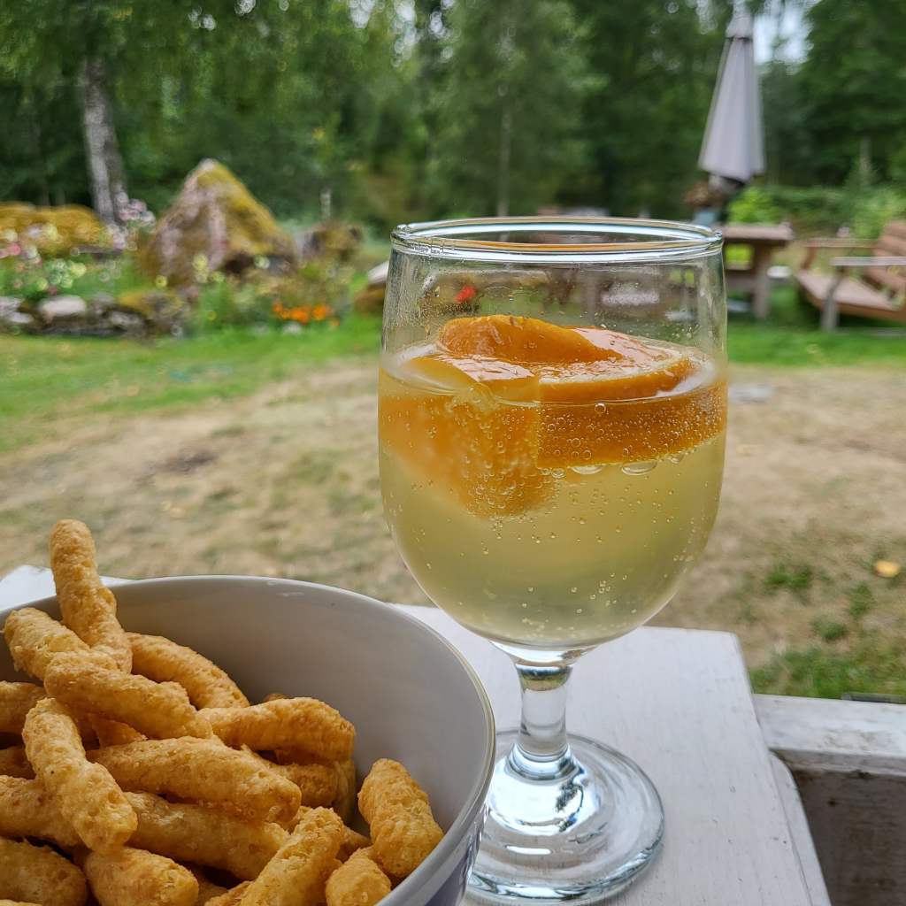 När det började regna flyttade jag upp på farstukvisten. Det var fortfarande varmt och skönt! Då inföll även sangria o’clock.