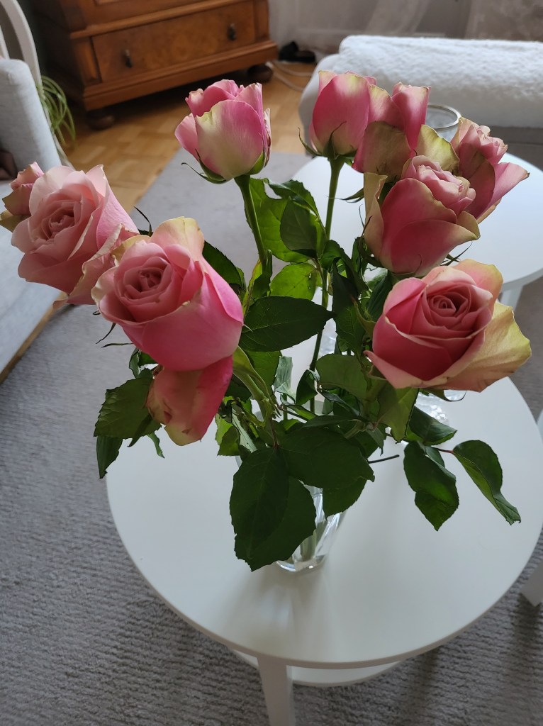 Plockade lite hemma, sen läste jag bok i soffan en stund innan jag förberedde middagen. Anita kom och hade med sig så fina rosor.