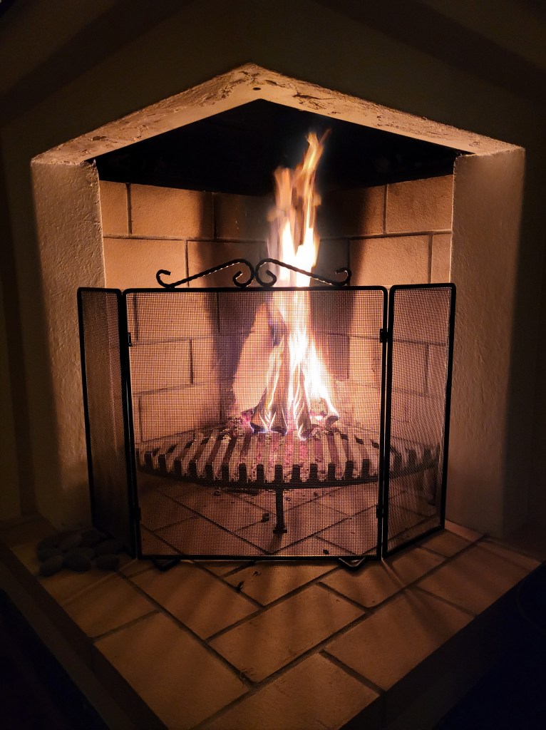Vi tände en massa ljus, och en brasa. Vi var så stolta över att vi fick fjutt på brasan vid första försöket! Det brukar alltid vara hennes man som tänder annars, men vi kunde minsann oxå!