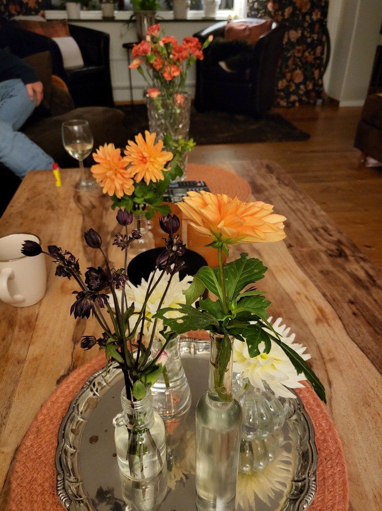 Sen flyttade vi in i soffan. Kerran hade så fina blommor på bordet.