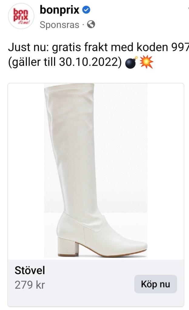 När jag skrollade runt på nätet kom reklam upp i vanlig ordning. Och nu säljer de såna här stövlar igen, som mamma hade på 70-talet!