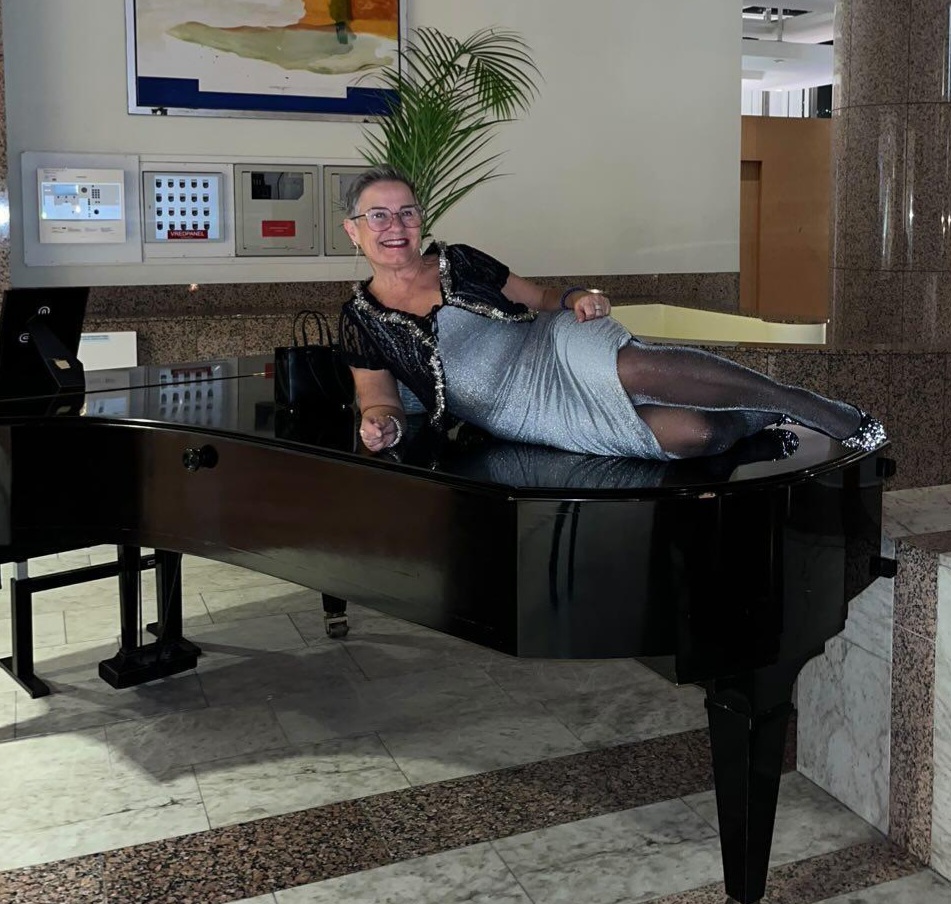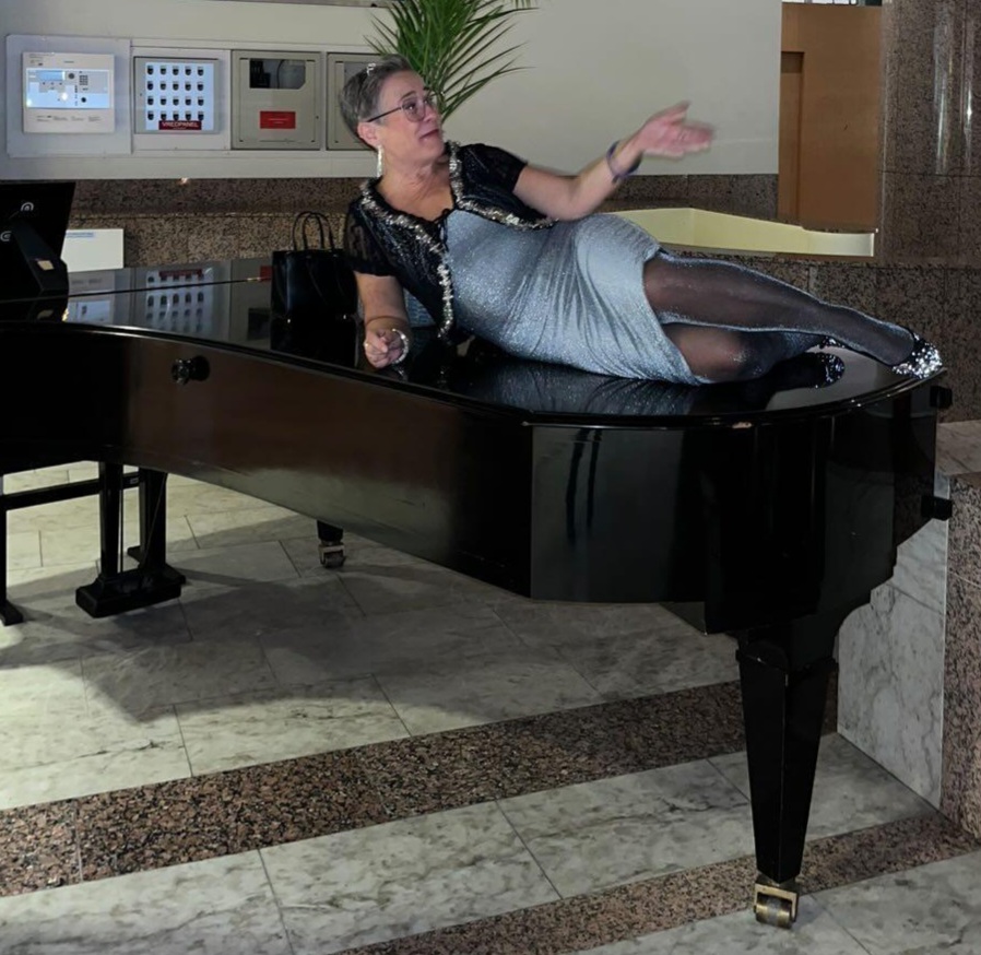 Det fans en flygel så jag tänkte att så klart ska jag väl ligga på den.