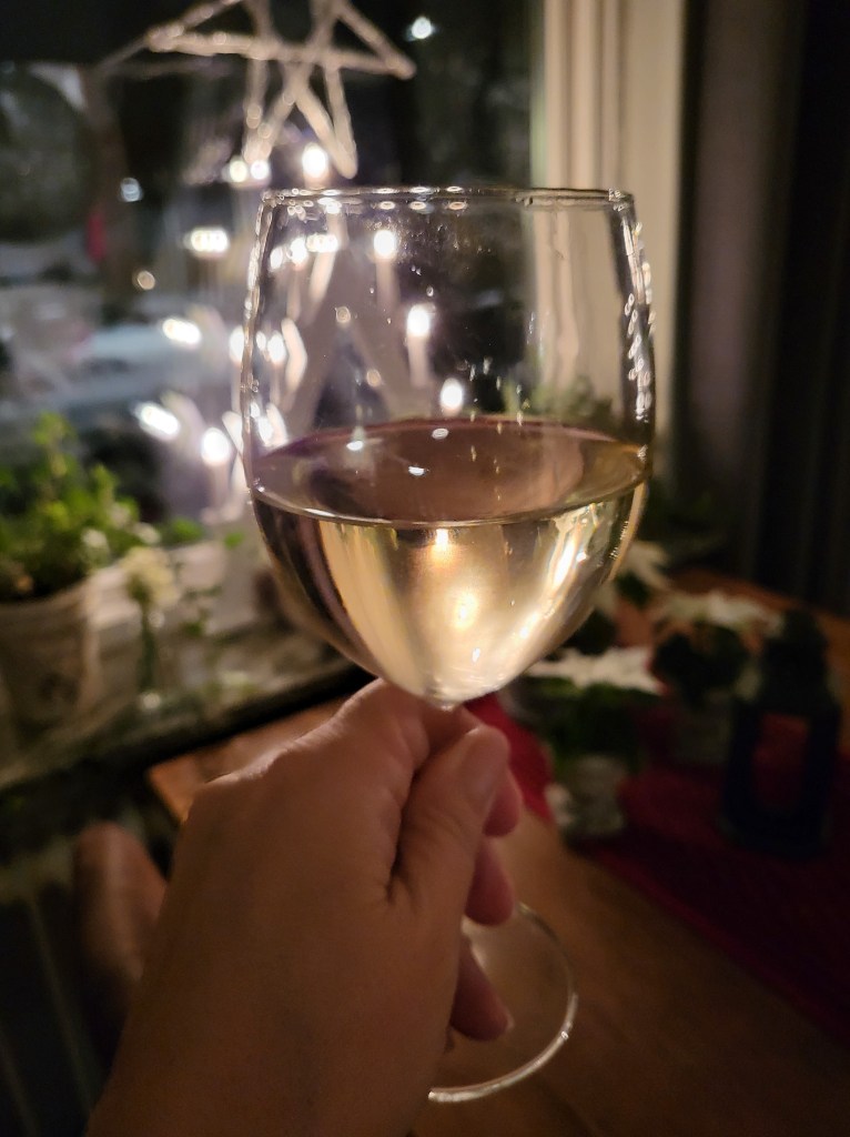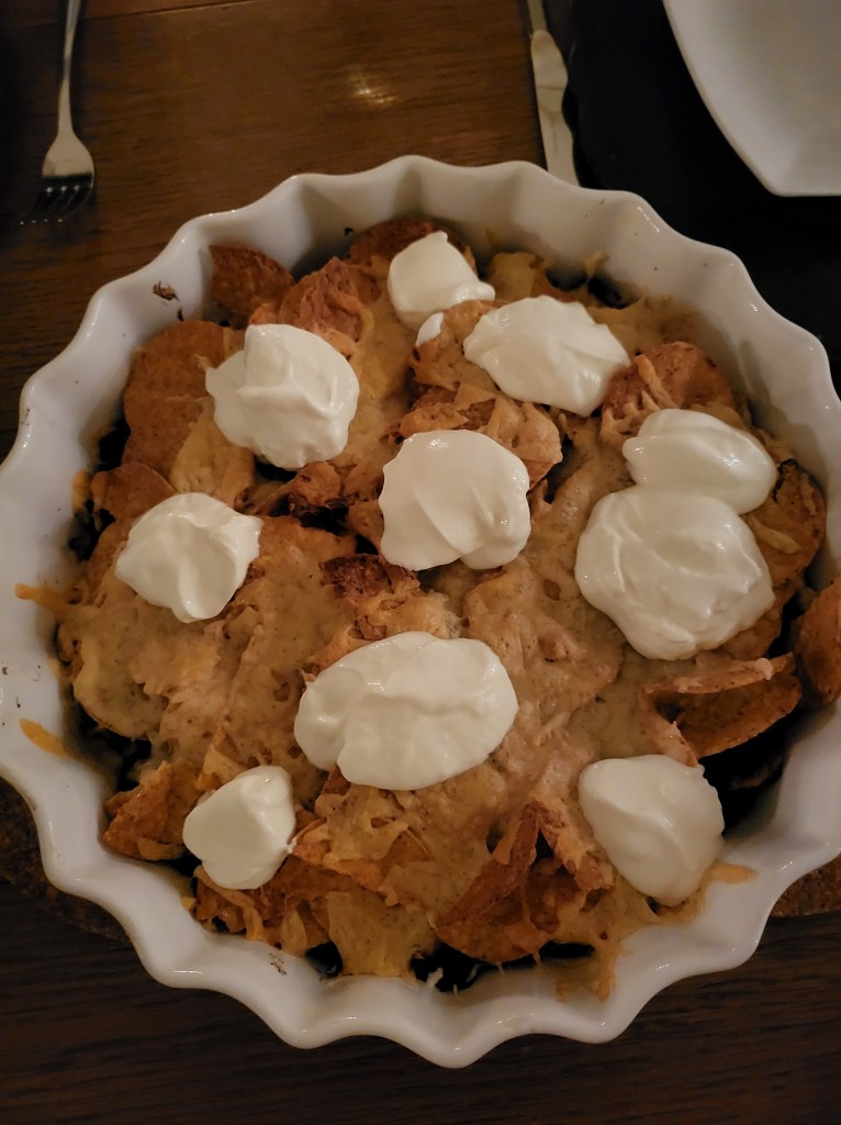 Vi drack varsitt glas vin och Kerran lagade en tacogratäng.