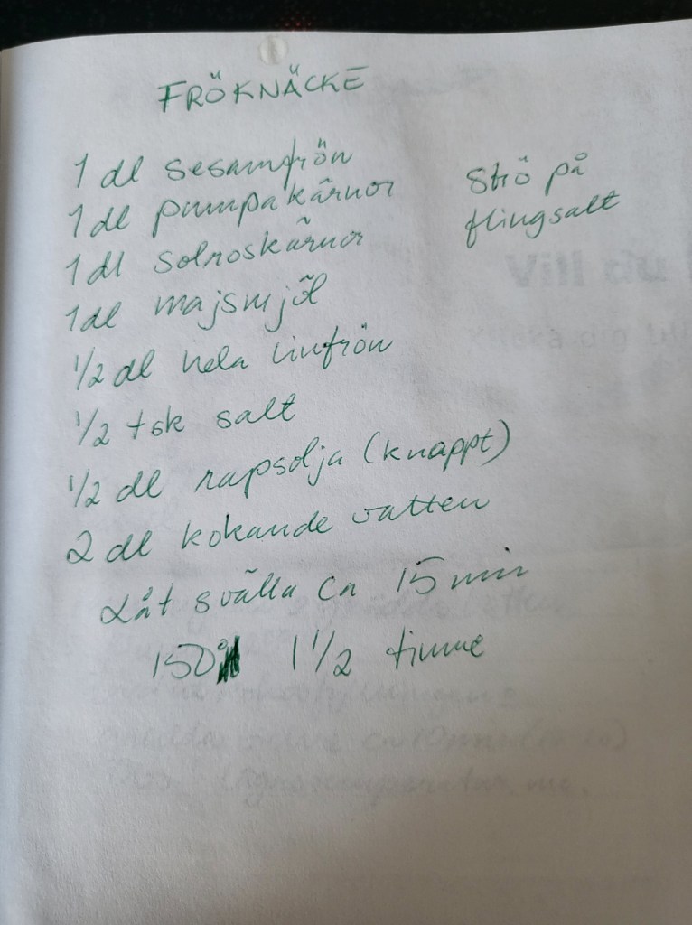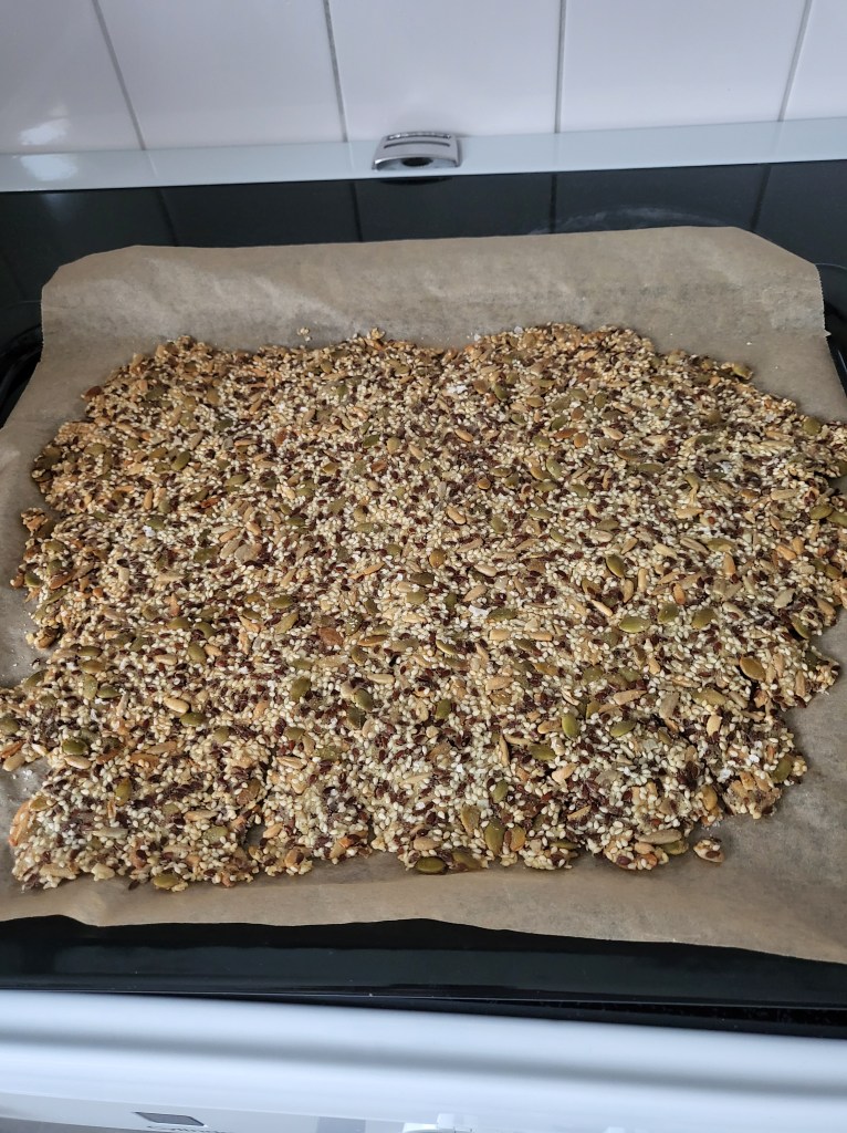 Det var länge sen jag gjorde fröknäcke, ett tag gjorde jag ju det väldigt ofta. Men det är väldigt lätt att göra. Bara blanda allt i en påse, och gucka ihop.