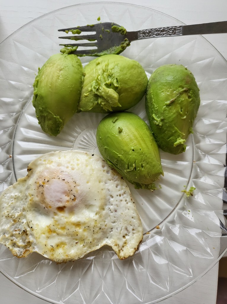 Var inte sugen på nåt direkt, och kollade i skåpen vad som fanns. Soppa? Nää… Panerad fiskfilé? Nää… Så, stekt ägg och avokado blev det. Gott och enkelt!