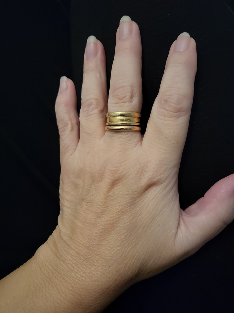 Så nu flyttade jag mommoringarna till vänstra långfingret och den här får sitta på höger ringfinger.