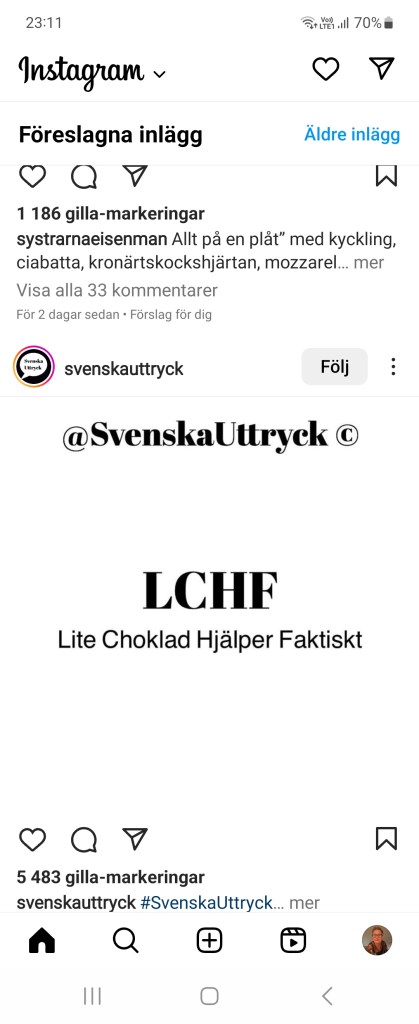 Hittade det här på Instagram, så nu ska jag säga att jag kör LCHF!