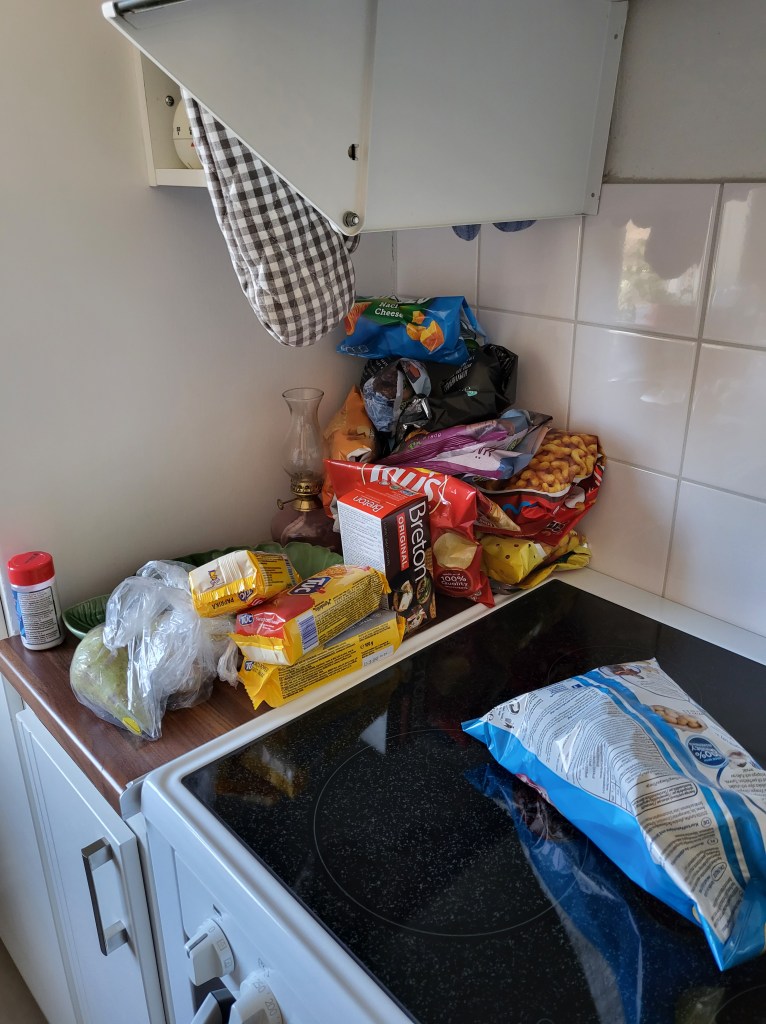 NĂ€r jag kom hem var jag rĂ€tt seg. Tittade pĂ„ disken och alla skĂ„lar med snacks och bestĂ€mde mig för att efter jobbet pĂ„ mĂ„ndag Ă€r ett bra tillfĂ€lle att ta hand om det, och gĂ€stsĂ€ngen. SĂ„ jag har nĂ„t att göra ikvĂ€ll, det Ă€r ju bra. đ