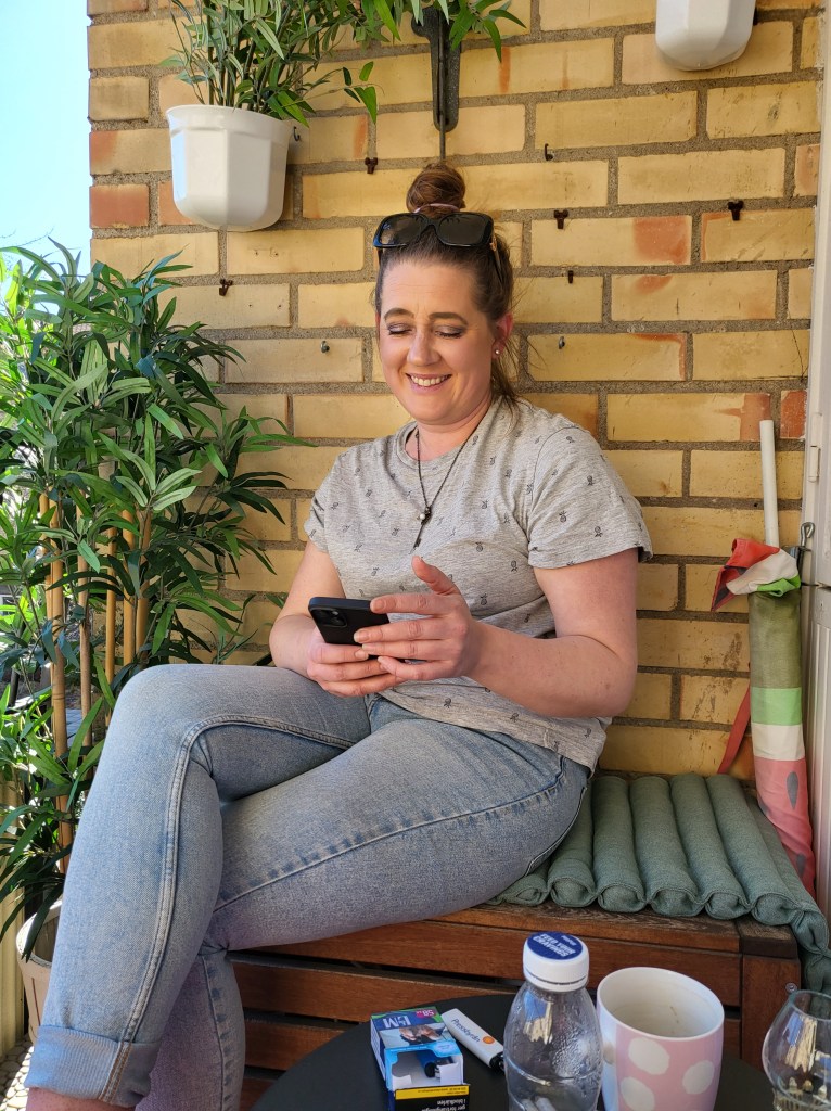 Frida riggade upp sin mobil med sjÀlvutlösare sÄ vi kunde ta en gruppbild.