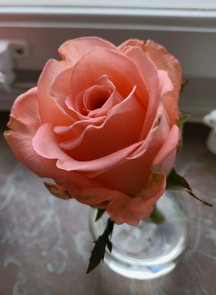 Vaserna med blommor står kvar, alla utom den på handfatet. De tulpanerna var slut. Men rosorna är så fina!
