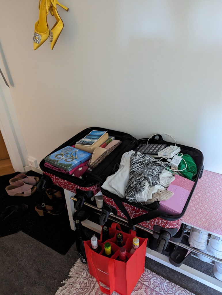 M och jag kom överens om att jag tar med så att vi har när wine o’clock inträffar. Och blir det över (fast vi är ju några stycken på plats nu i helgen, så vi får väl se) så har vi det till semestern sen.