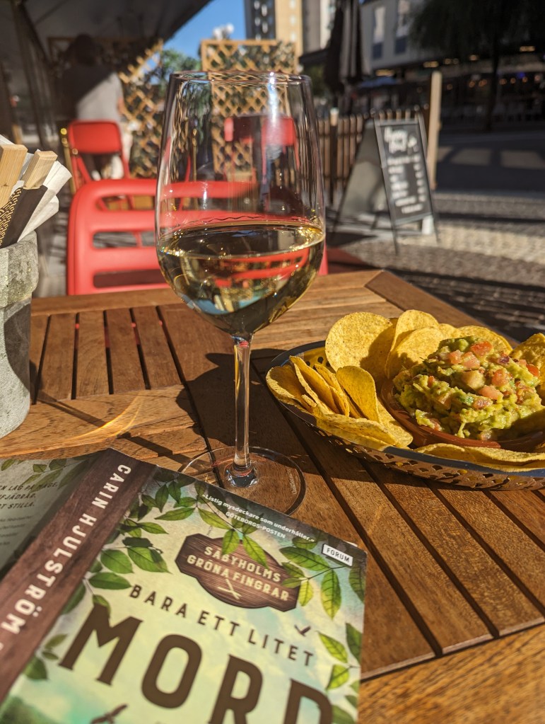 Det var mysigt att sitta i solen, titta på folk, läsa och sippa lite vin och äta guacamole.