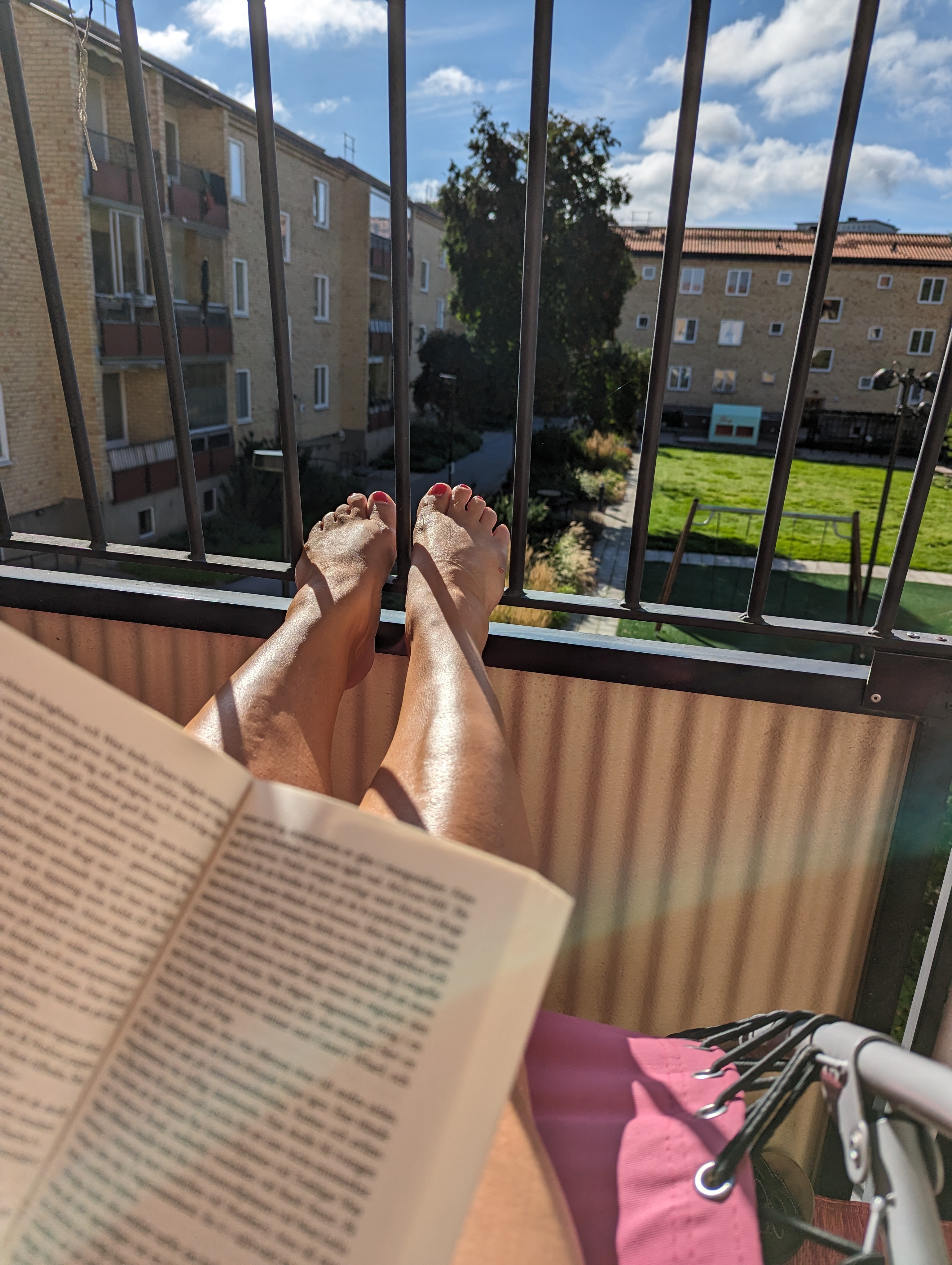 Självklart satt jag på min balkong hela dagen! Så skönt, bok, dricka och så äta nåt då och då.