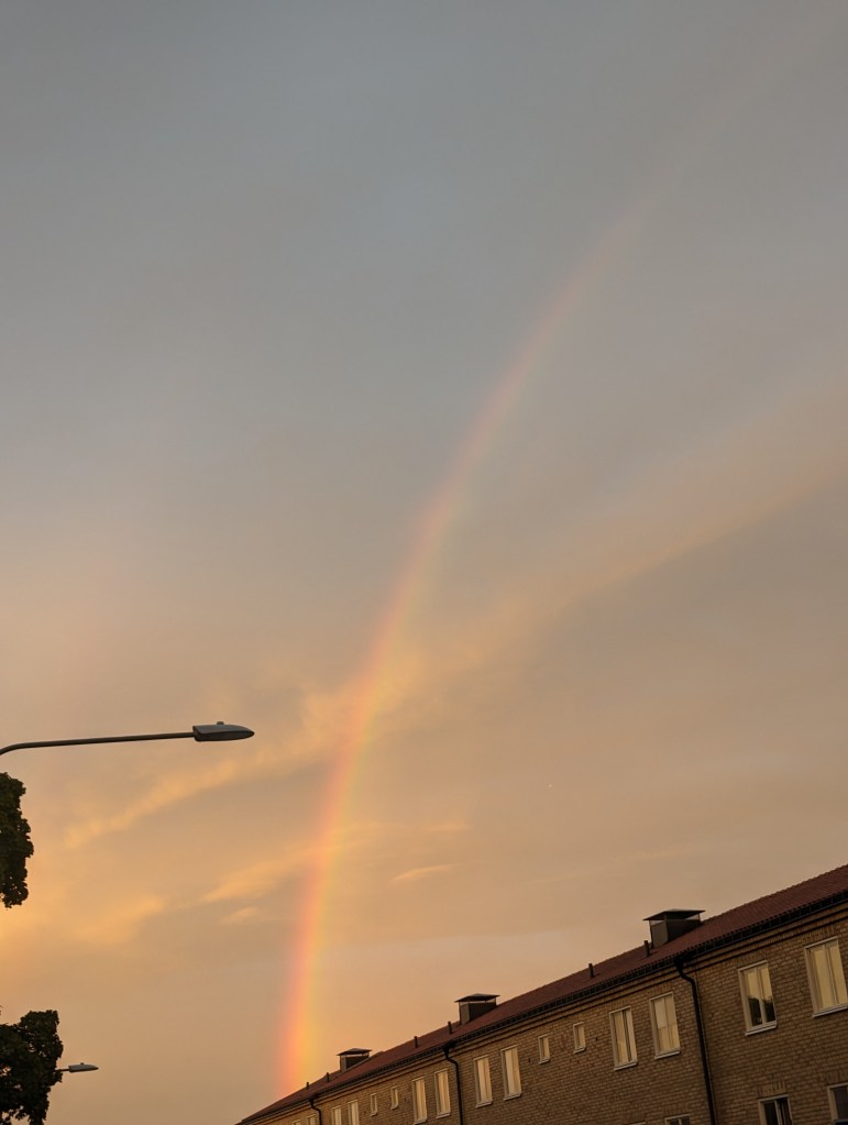 Det hade regnat när jag satt inomhus, och när jag gick hem var det en så vacker regnbåge.