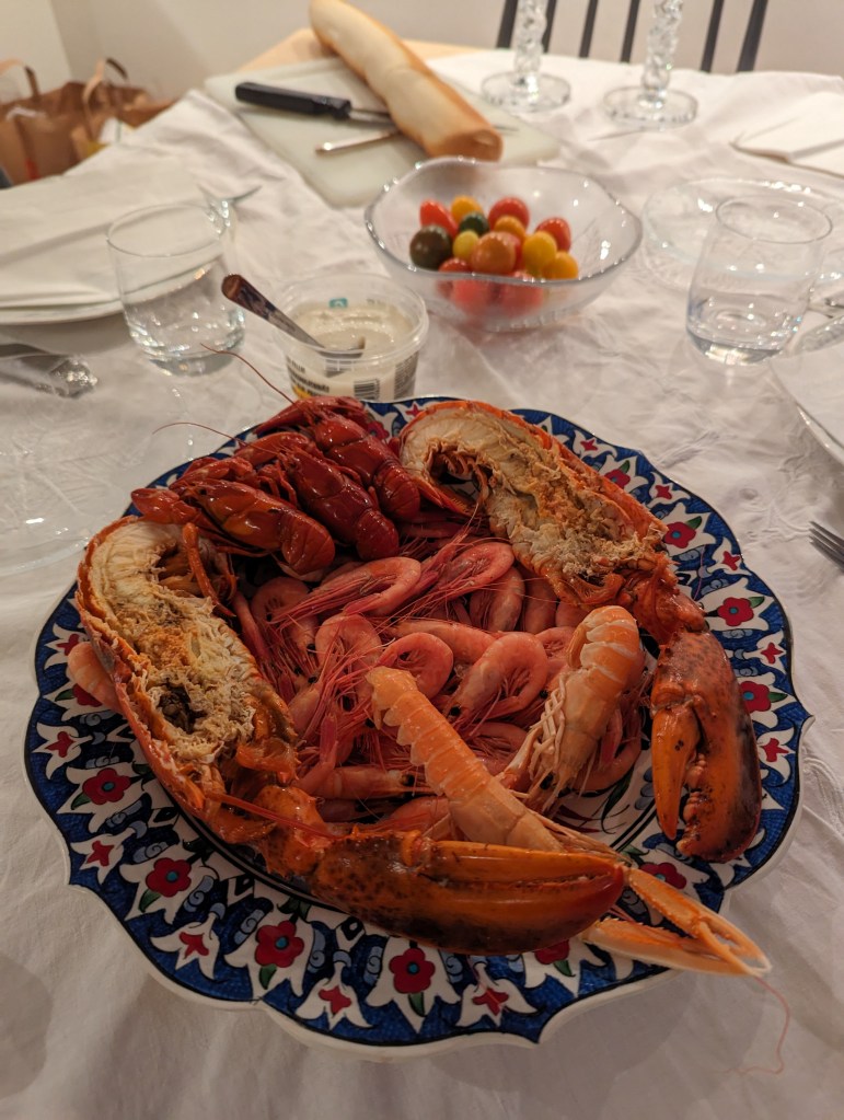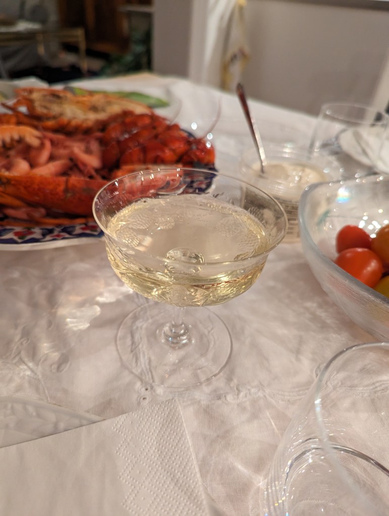 Och i så vackra glas, dessutom. Så vi satt och babblade en stund, sen dukade hon upp smarriga skaldjur.