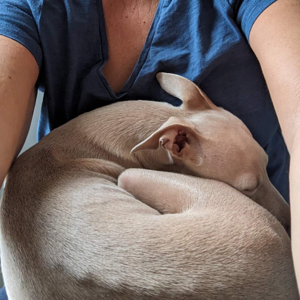 Bimbo blev glad att träffa matte igen. Men fy så tomt det blev här hemma!