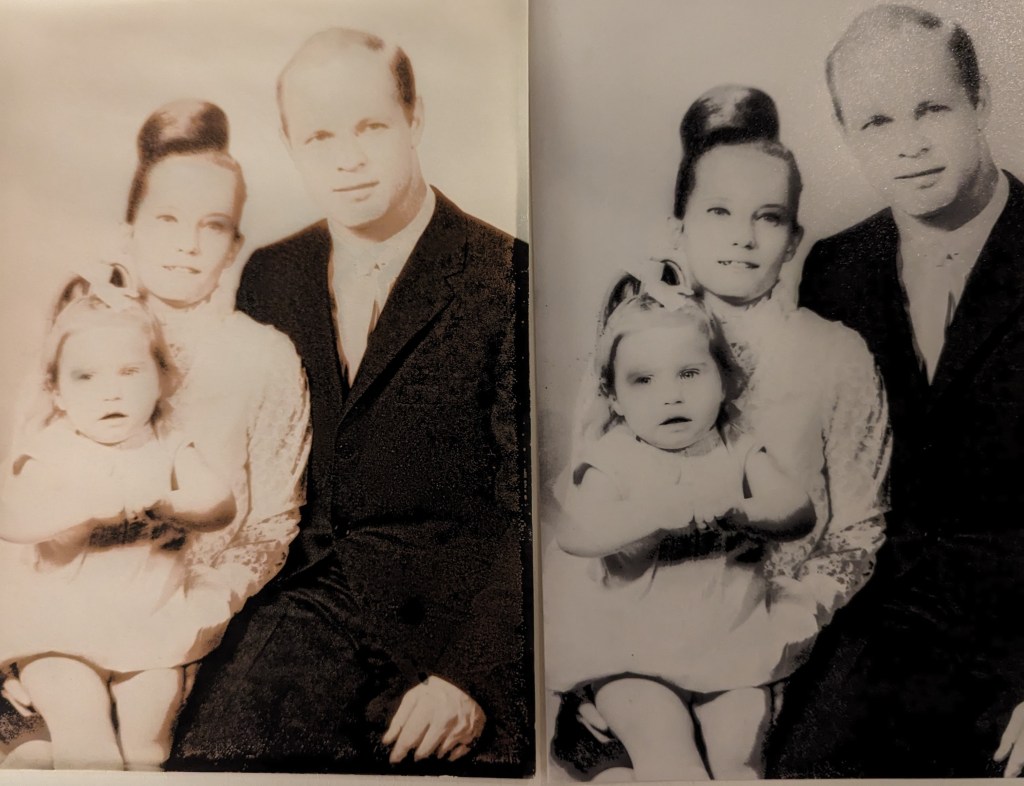 På vägen hem så stannade jag i centrum och handlade lite, och hämtade ut ett fotografi som bleknat. Det är ett av få av mig med både mamms och papps.