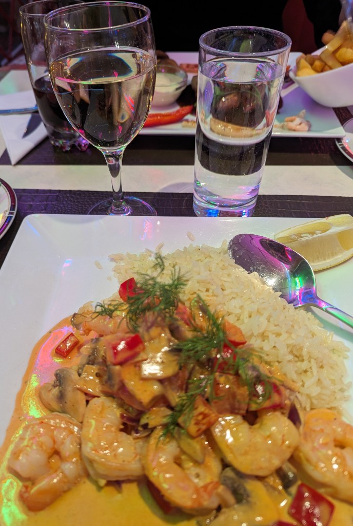 Efter jobbet gjorde jag mina övningar för nacken och bröstrygg. Och så satt jag och läste ett tag. Sen kom städerskan så då tog jag dramaten och knatade till centrum. Mötte M och vi gick och åt en tidig middag.