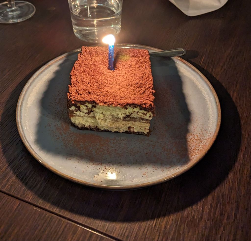 När tiramisu kom in så satt ett litet ljus i mammans.