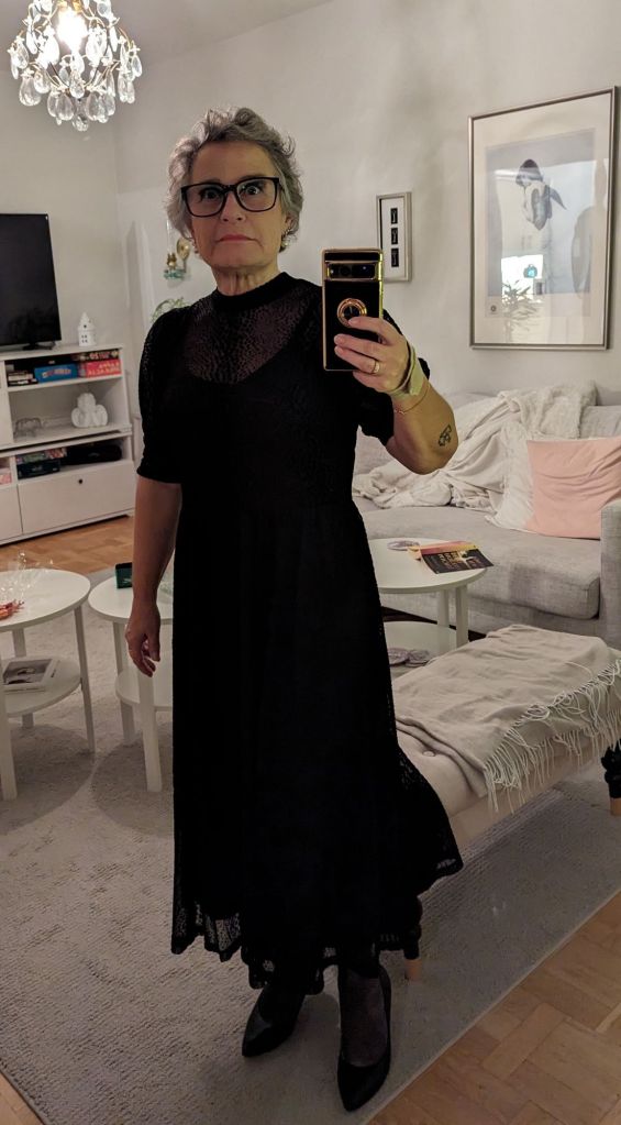 Även jag kände mig fin i klänning och smink. Sminkar mig ju nästan aldrig, mest för att jag knappt ser var det hamnar. Men nu har jag köpt en X10 förstoringsspegel så igår blev det både ögonskugga, maskara, rouge och läppstift!