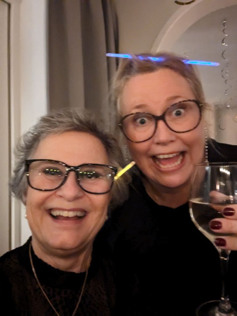 Vid 1 messade Systeryster, som var på en annan fest. Ville inte jag gärna att hon kom? Jo, så klart jag ville! Ja, kan du hämta oss då??