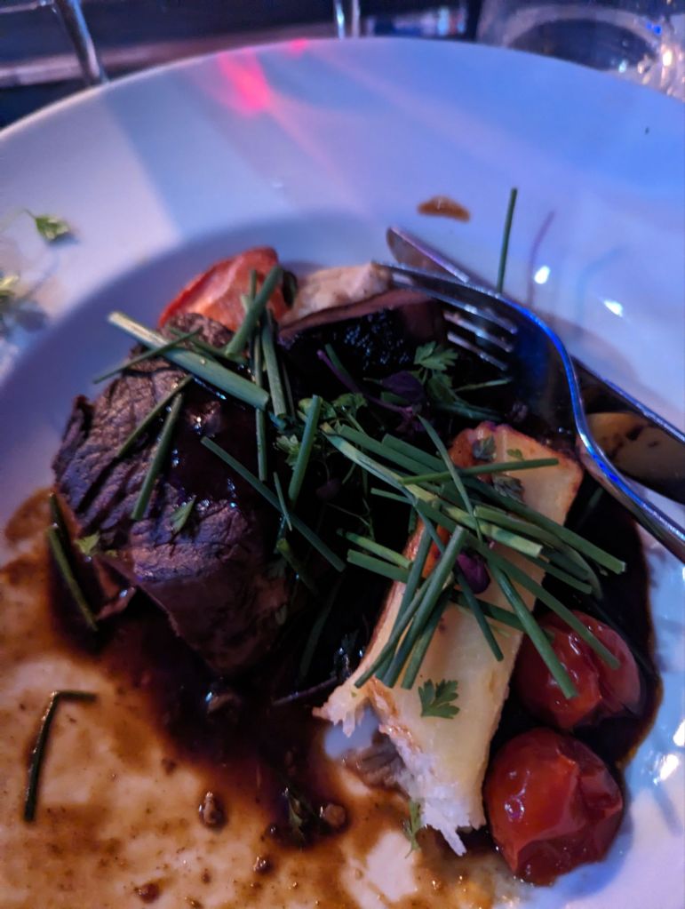 Till varmrätt var det oxfilé, potatiskaka och lite tillbehör.