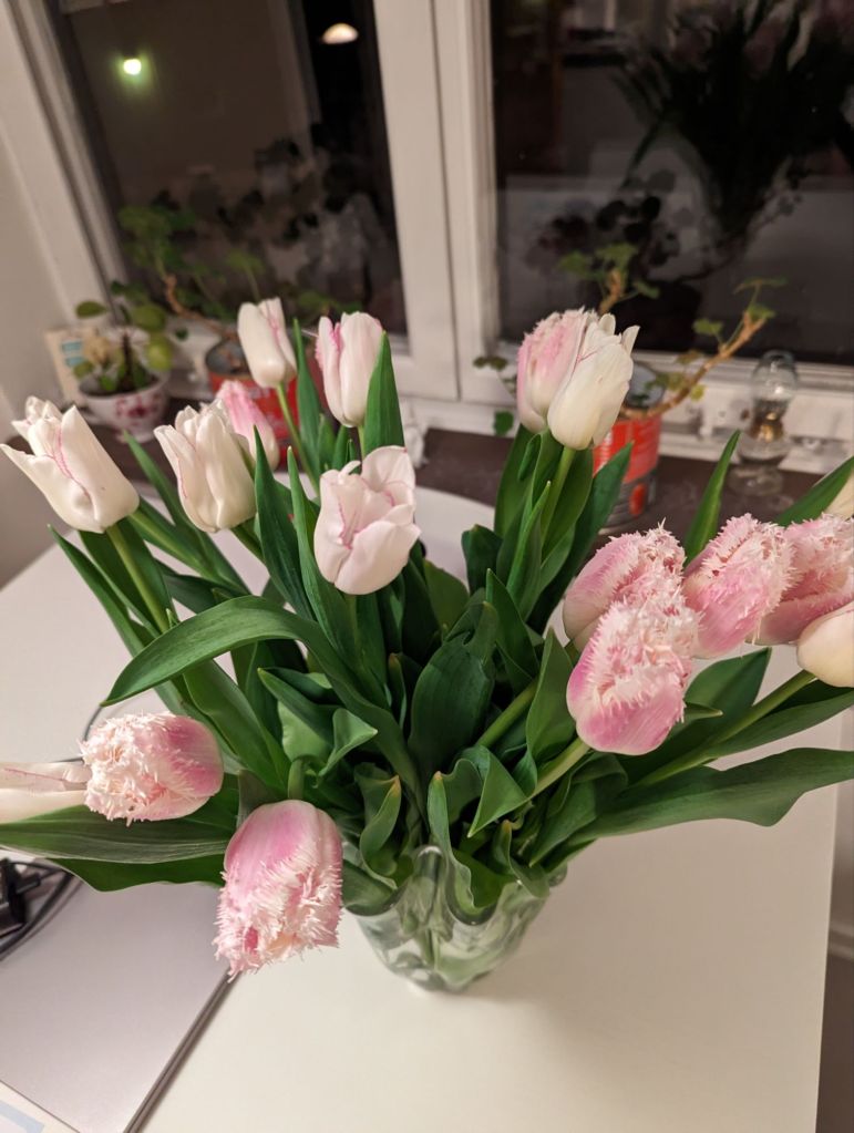 Jag fick ett fång tulpaner i försenad födelsedagspresent av dem.