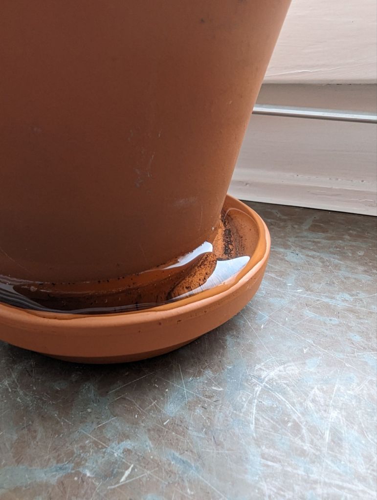 Så fram först med vattenkannan och gick runt och vattnade alla och fyllde på mer i kannan vartefter. En stackars pelargon var nog väl torr, för vattnet rann rätt igenom.