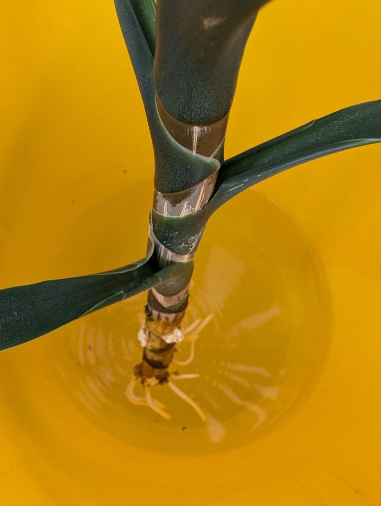 Äntligen hade det kommit rötter på stammen jag kapade på dracenan.