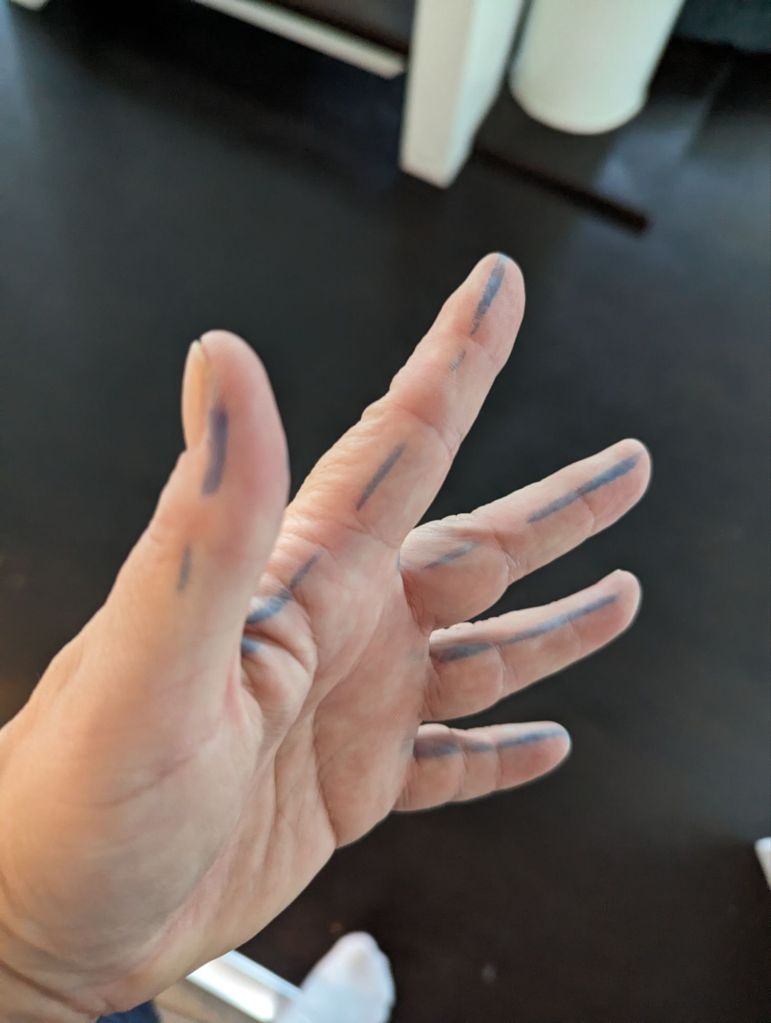 Alltså, den där nedra pennan! Färgen var både vatten- och tvålfast!