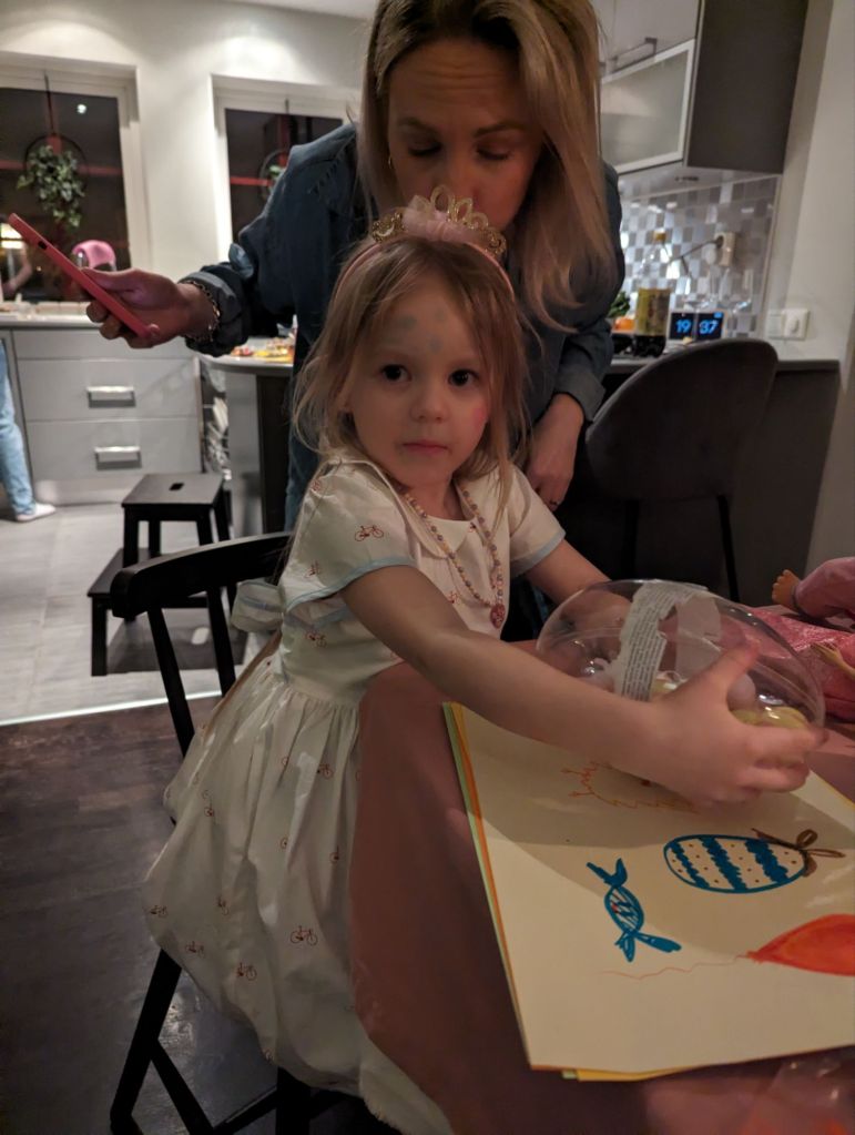 Gammelfastersfina har en av gammelfastrarna som favorit, och det är inte jag…. Hon verkligen älskar Systeryster! Så gulligt! Igår hade hon sagt att hon måste ha klänning och ”klackskor” för det kommer säkert Gammelfaster ha. Nu hade tyvärr inte Systeryster det… Men Gammelfastersfina var väldigt fin i sin klänning och glittriga skor. Sötnosen!