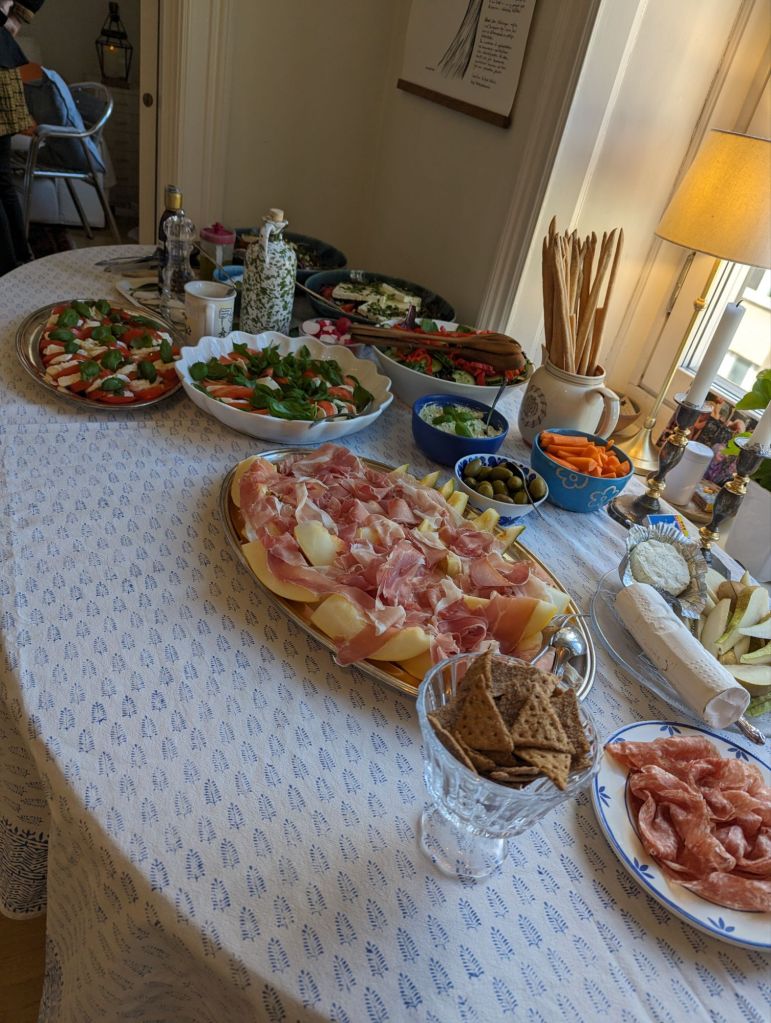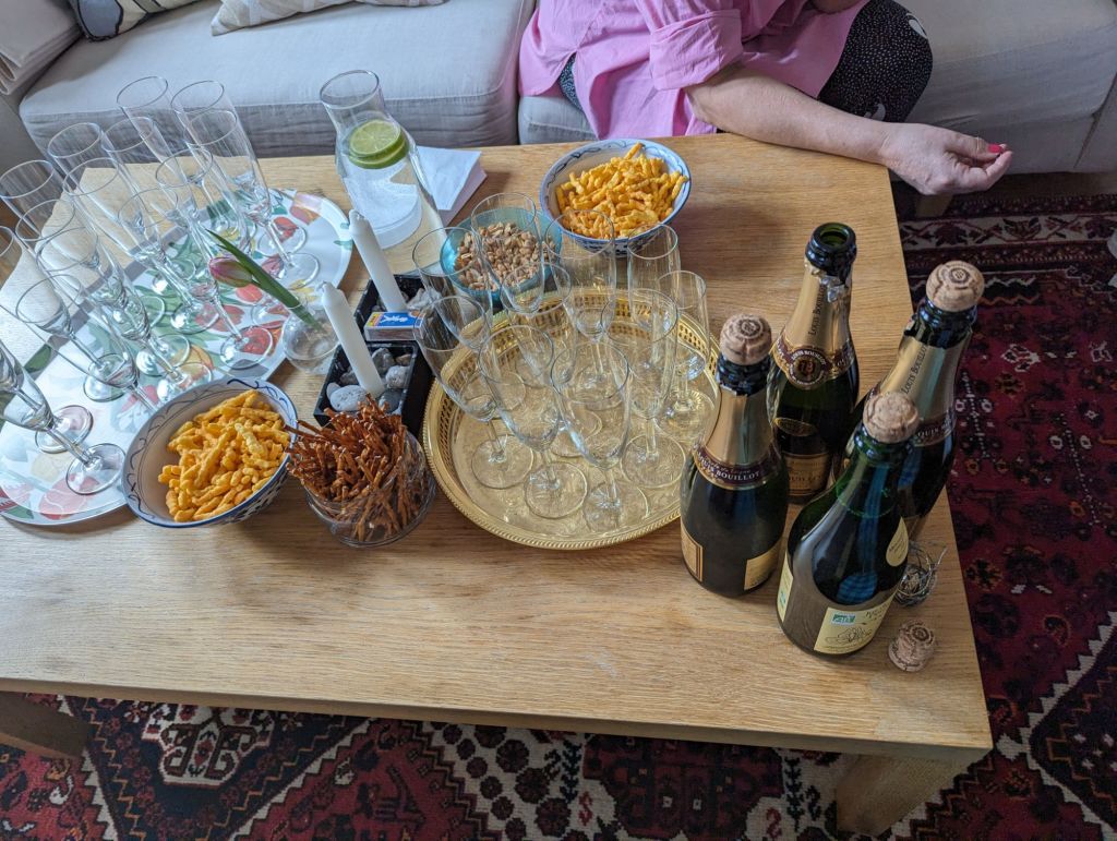 Vi började med champagne och lite snacks medan alla pratade med varandra och Anna-Lotta skålade och hälsade på alla.
