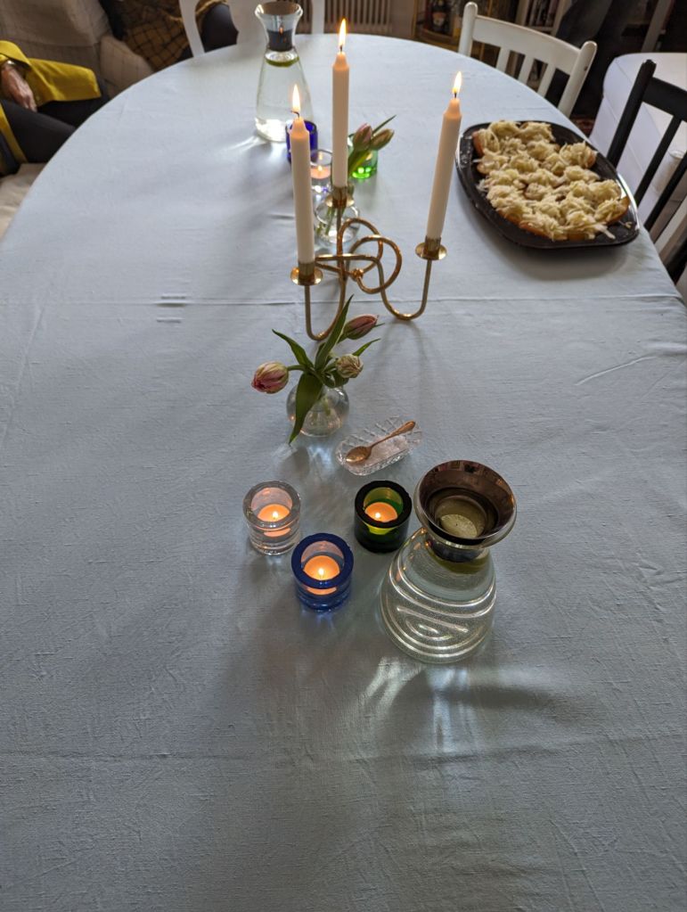Och så småningom gjorde jag mig iordning och tog med det och åkte hem till Susanne, som dragit ihop de flesta av Anna-Lottas väninnor hem till sig. Och alla hade med något att äta eller efterrätt.