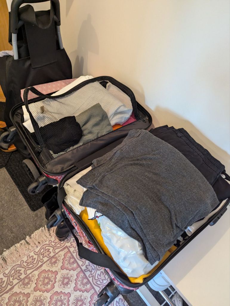 Direkt från kontoret i eftermiddag åker jag till Långtbortistan och börjar semestern hos Systeryster med familj. Hemester i deras fina hus! Sen i veckan tar vi tåget tillsammans med Bror och Svägerskan till Köpenhamn några dagar. Så det blev rätt mycket packning. Jag är sån att jag alltid tar med lite för mycket. Jag vill kunna ha kläder att välja mellan. Och så vet man inte vilket väder det kommer vara.