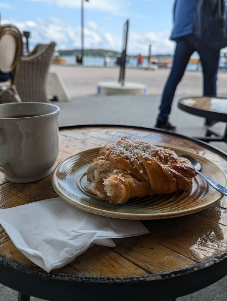 Babblade, kollade på folk och båtar. Så underbart att se ut över vatten! Och god fika!