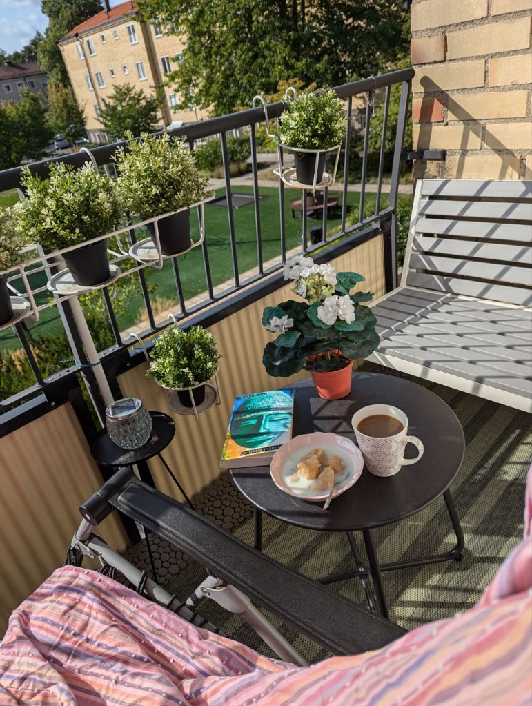 Efteråt fikade vi och satt och babblade ett tag innan vi åkte åt varsitt håll. Jag satte mig på balkongen när jag kom hem. Så härligt i solen! Läste och så somnade jag en liten stund i badenbaden. Mysigt!