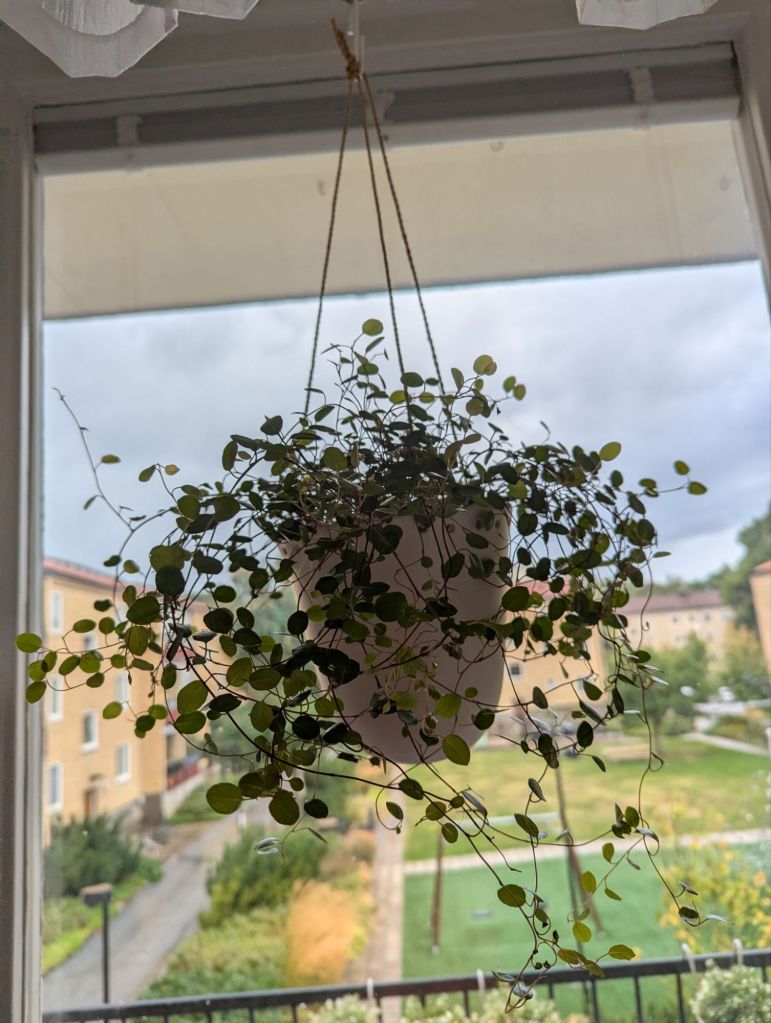 Jag fick en ampel av M, och nu hittade jag en fin växt som passade perfekt i den! Plättar på tråd, tror jag den heter.