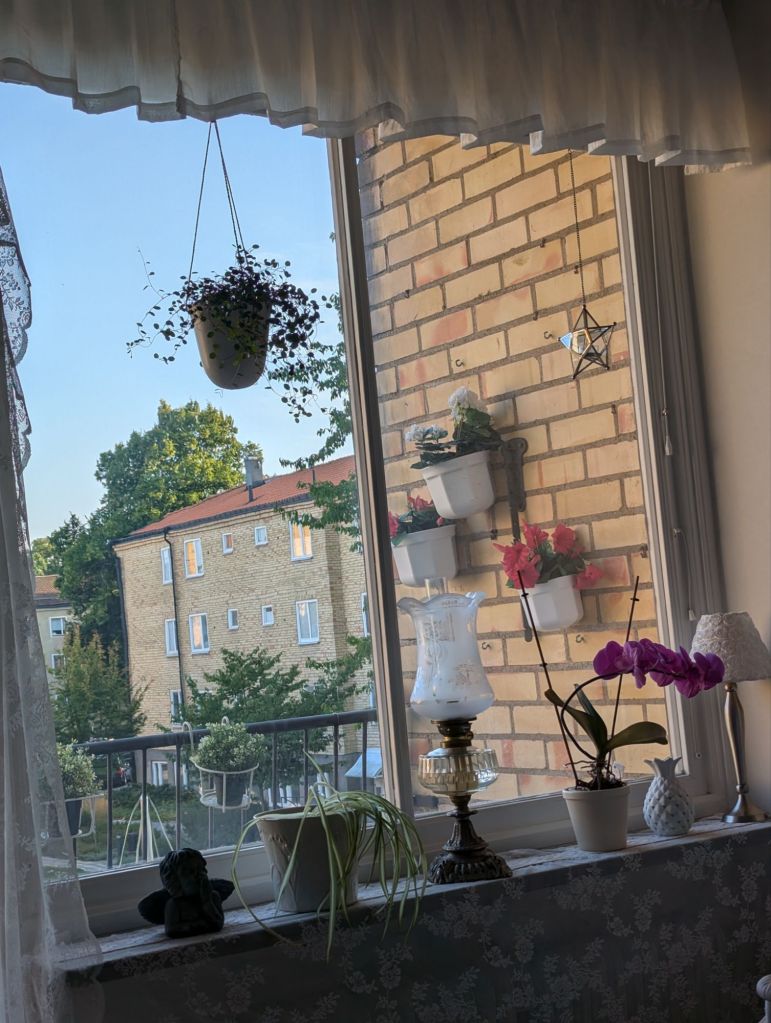 Möblerade om lite i fönstren nu när en massa gröna växter var borta. Såg så himla tomt ut, främst i vardagsrummet.