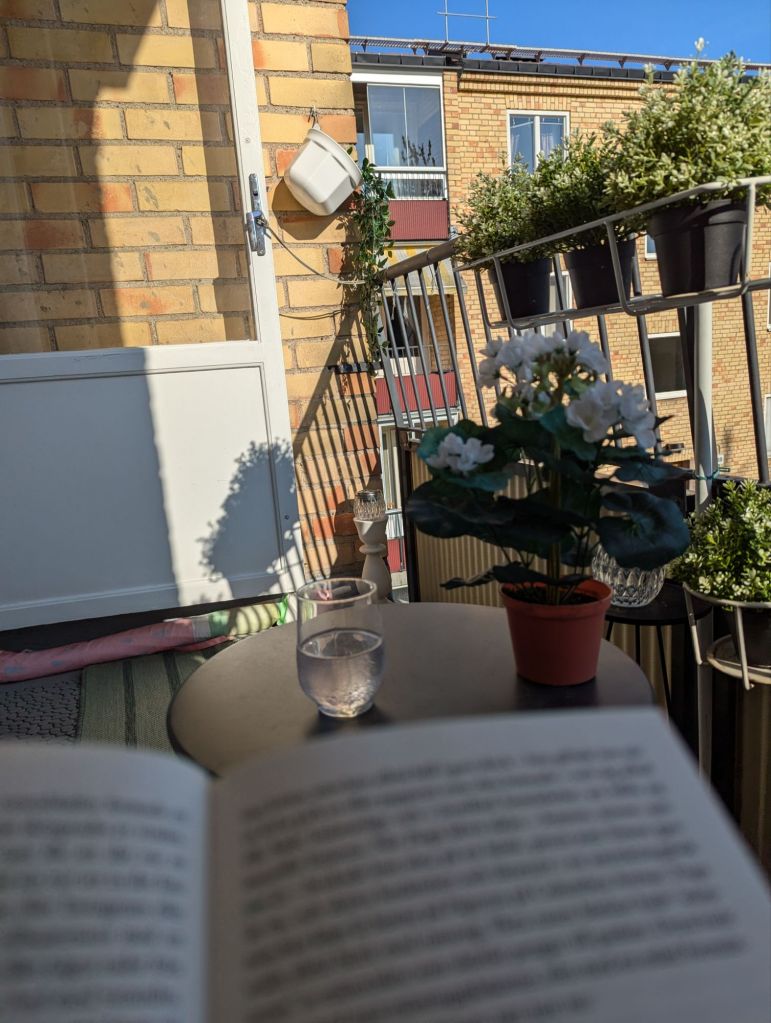 Vilket väder! På lunchen satt jag på balkongen en stund, men det var för varmt i solen! Men efter jobbet, klockan 16, då låg inte solen på balkongen längre.