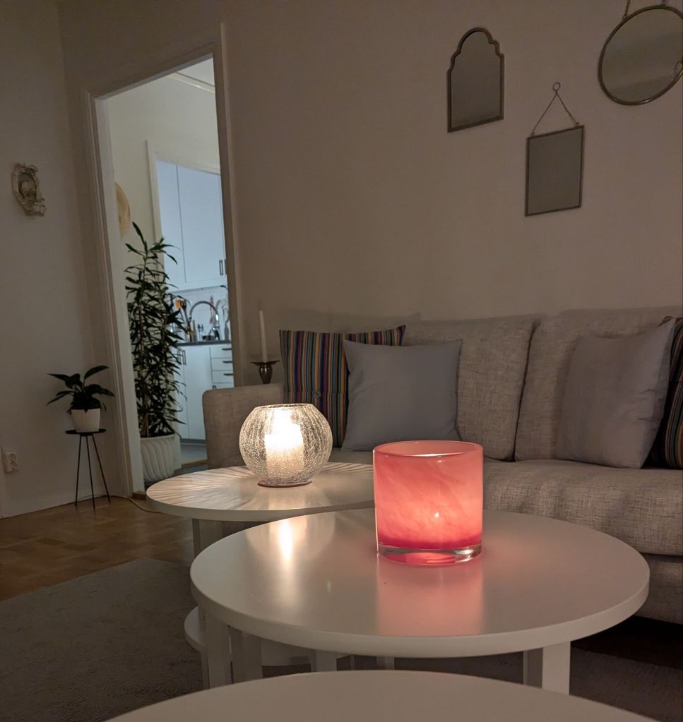 Tände ljuslyktor och sjönk ner i soffan och på med TV:n.