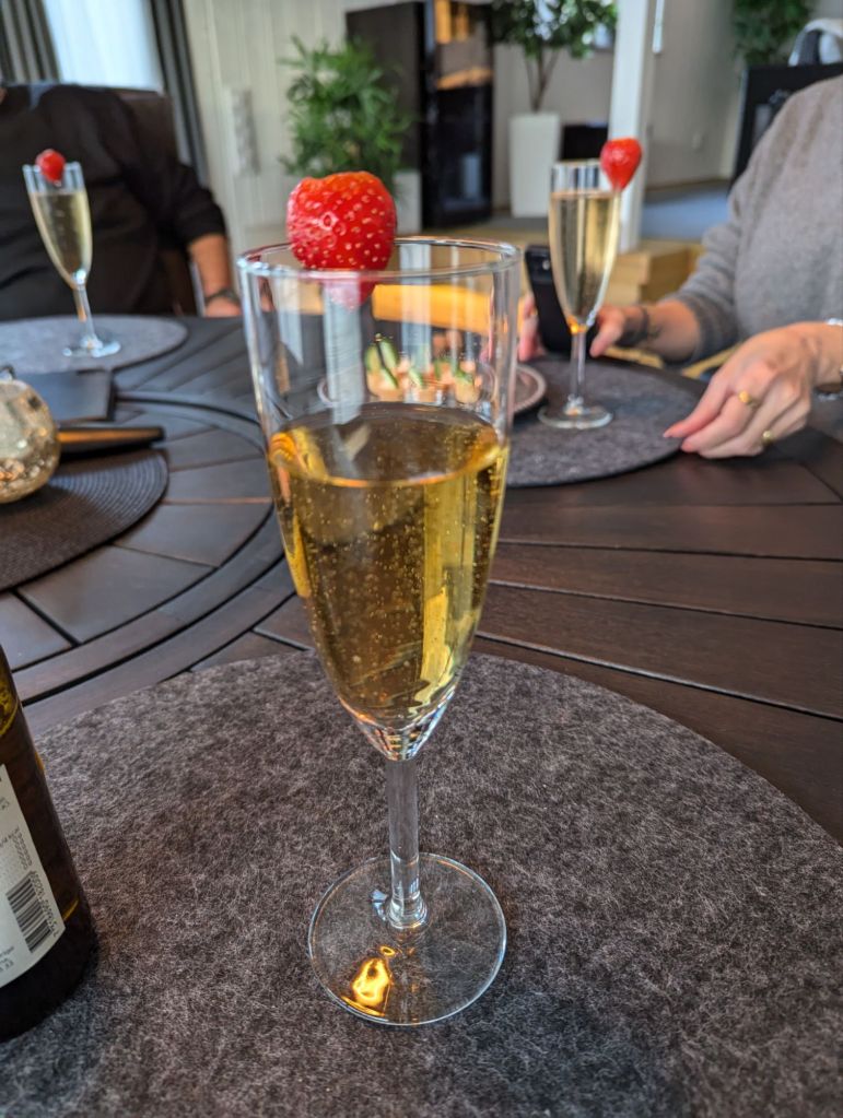 Vi satt i deras fina uterum och drack lite bubbel. Mitt bubbel var alkohol- och sockerfri ginger beer.