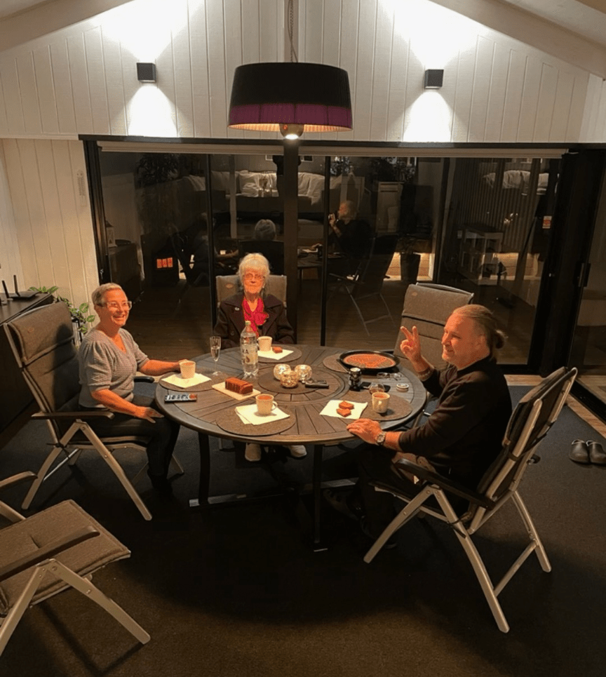 När det var dags för maten så skulle vi hämta Mamsen, som bor kanske 100 meter bort. Och då började det regna, så klart! Så vi tog min bil och hämtade henne. Så kul att träffa henne, det var ett tag sen.
