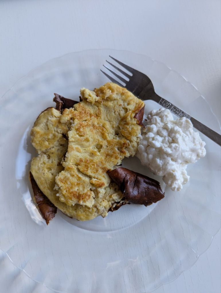 2 dagar i rad har jag gjort bananpannkaka till lunch. Så gott med vaniljkeso till!