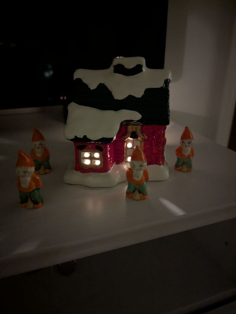 De där små tomtarna älskar jag! De stod alltid på TV:n till jul när jag var barn. Nu sen några år har de fått ett hus/ljuslykta och nu står de framför TV:n. När jag var barn var ju TV:n en tjock burk så man kunde ha saker ovanpå den.