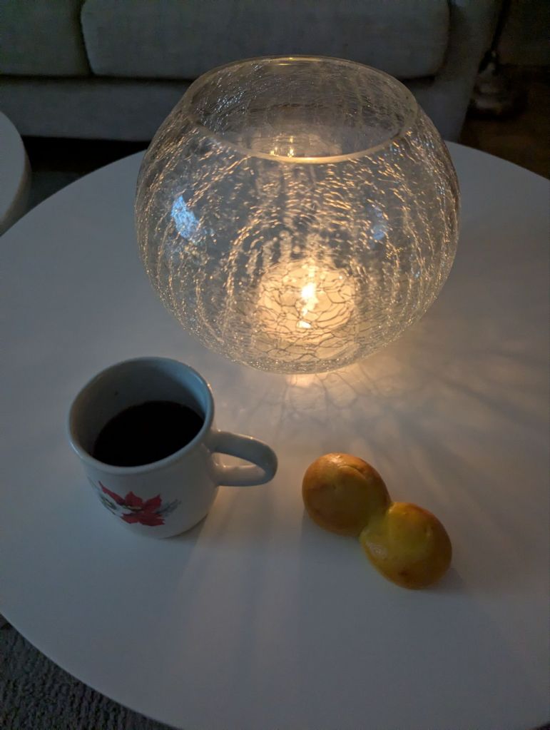 Jag köpte sockerfri glögg och lussekatter i måndags. Saturnus glögg som är riktigt god! Så igår hade jag försenat adventsmys!