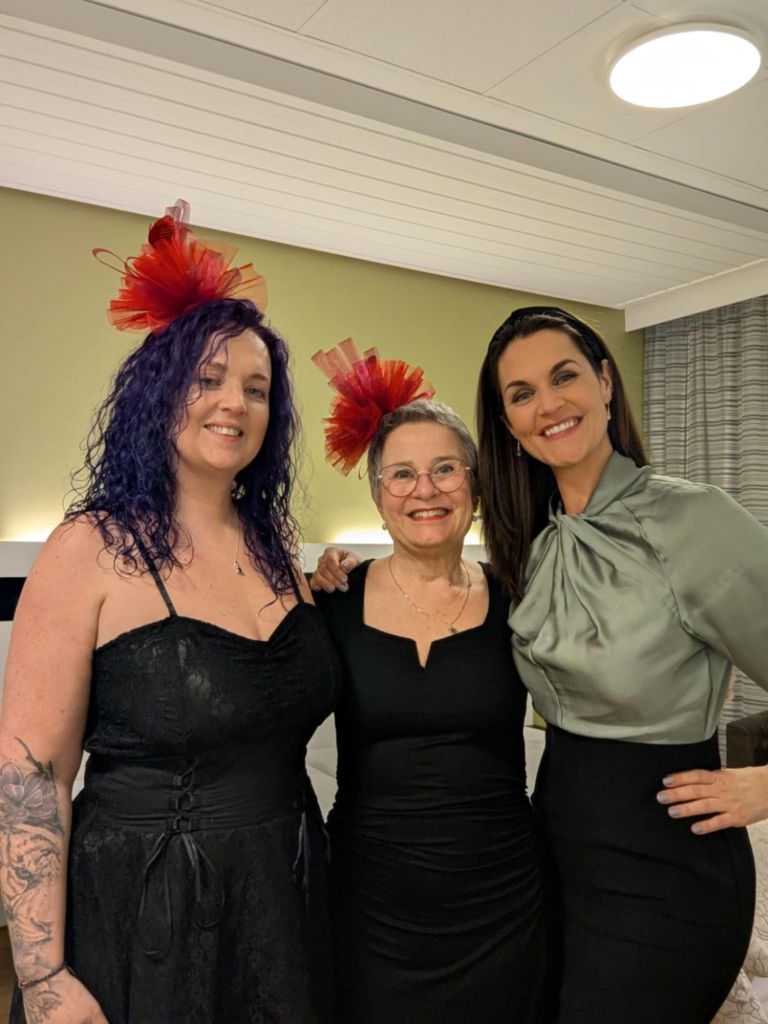 Vårt team hade bestämt att alla skulle ha en röd detalj på oss. Jag kom att tänka på en cirkushäst först när jag tog på mig diademet… Men äääh, vi körde!
