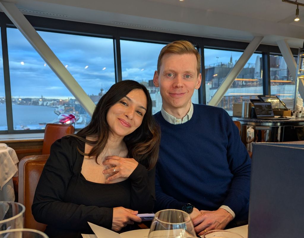Maral och Michel. De hade barnvakt till sin lilla dotter, Marals mamma och syster. Jag hade önskat att hon skulle varit med.