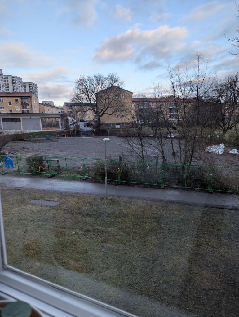 Jag antar att de snart kommer börja bygga, för som jag förstått så ska det byggas ett bostadshus där förskolan låg. Då ändras utsikten igen.