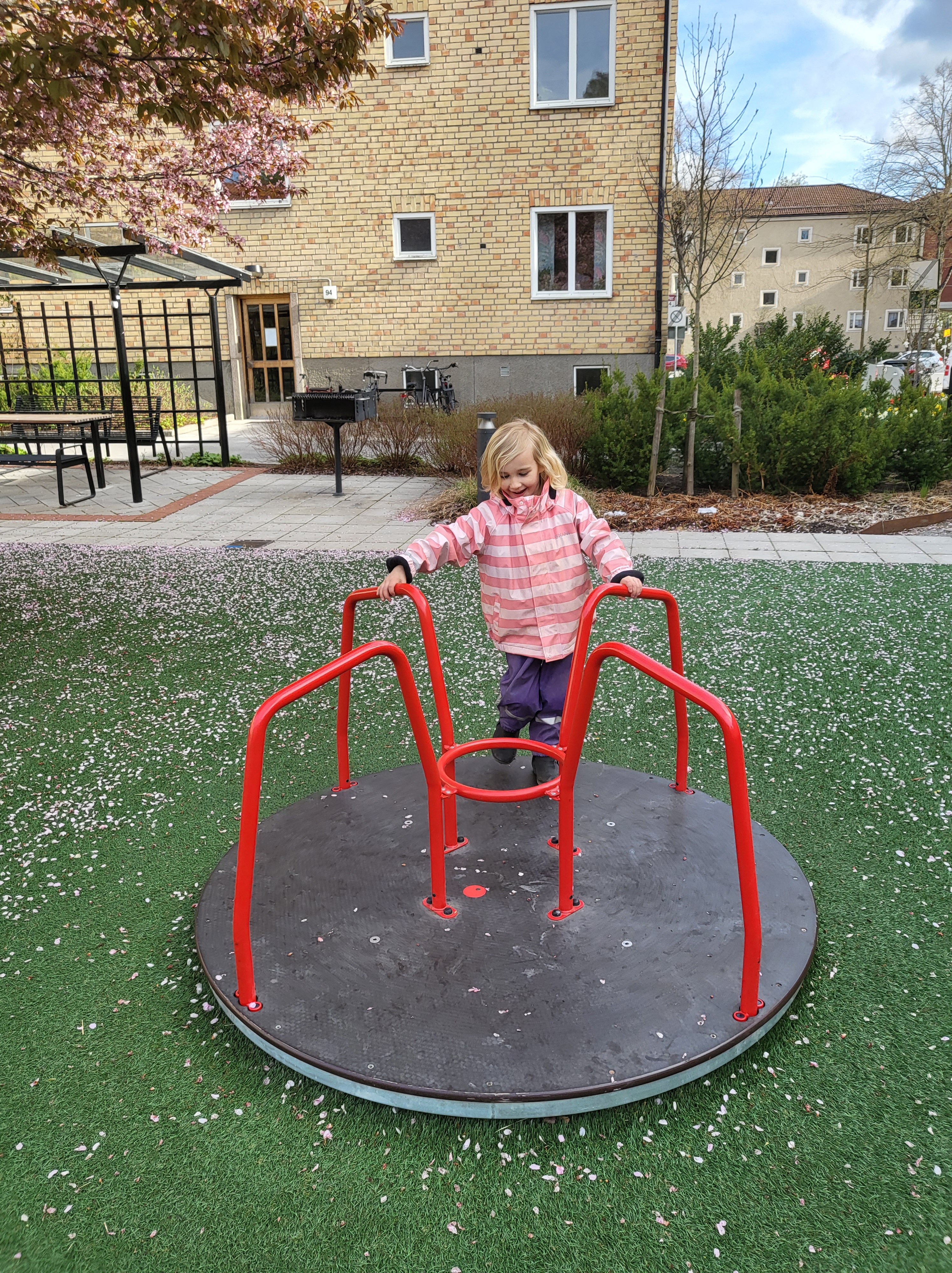 Korven älskar karusellen! Jag höll däremot på att ramla omkull för jag blev så yr, när jag åkt en stund…