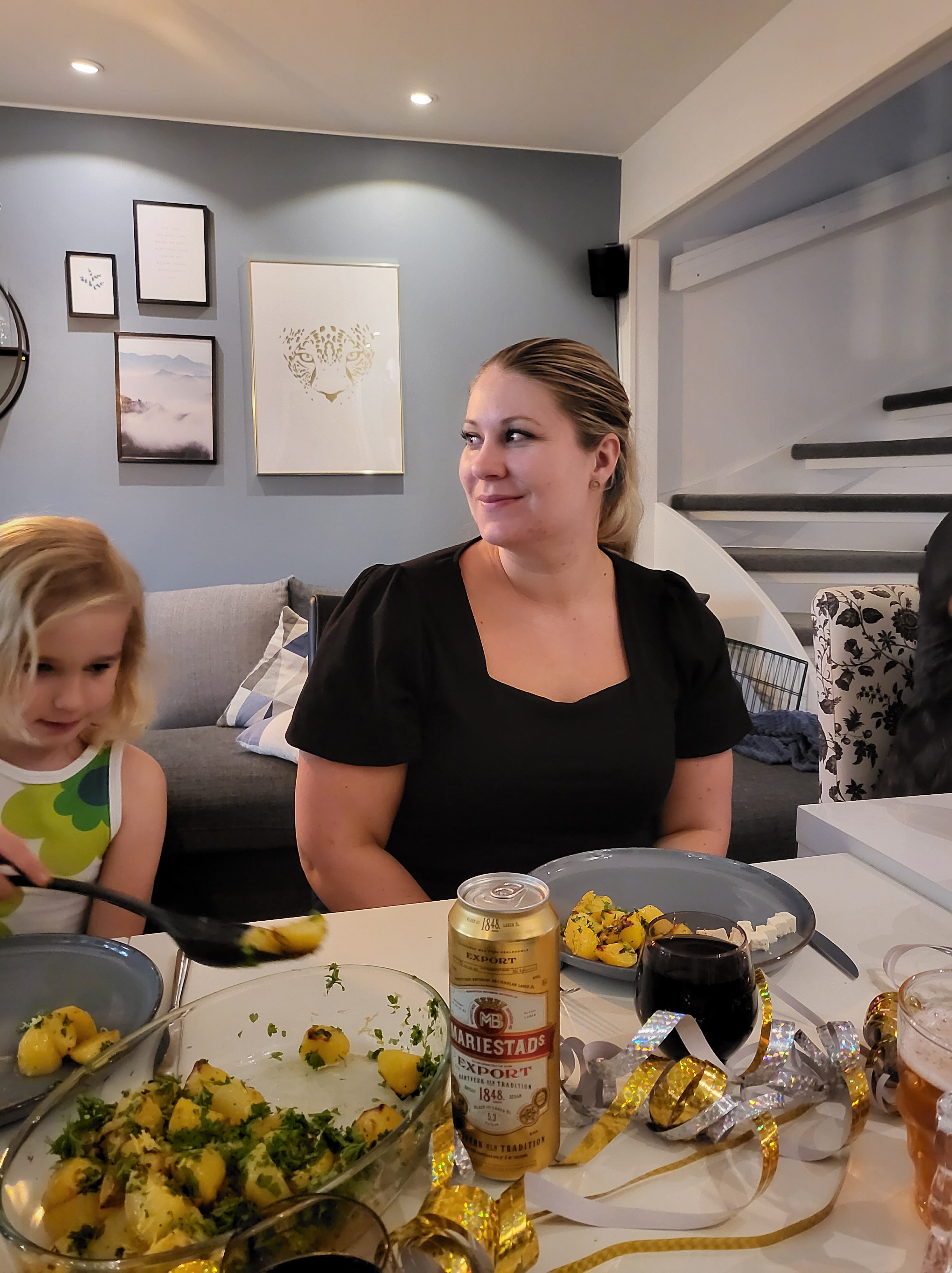 Styvmor brukade alltid bjuda på det på juldagen, och det bjöds både potatis och ris till så att alla fick precis det de gillar bäst. Så det var samma nu.
